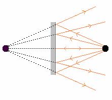 2. A ray from the top of the object that passes through the focal point is reflected parallel to the axis of the mirror.