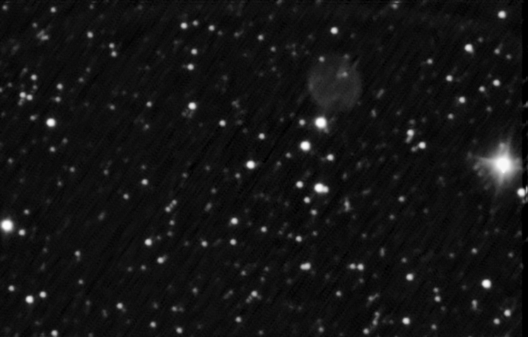 NGC 7048 is a moderately small, and fairly bright planetary nebula in Cygnus. It is situated about 7 degrees east of Deneb and about 4 north-east of the North America nebula. In a 10" telescope, the planetary is visible as a fairly faint, uniform disk. The bright star visible in the image above, is the 7.2 magnitude SAO 50601. Although this star helps in locating the field of NGC 7048, it makes the planetary more difficult to observe. The use of an OIII filter is a great help.