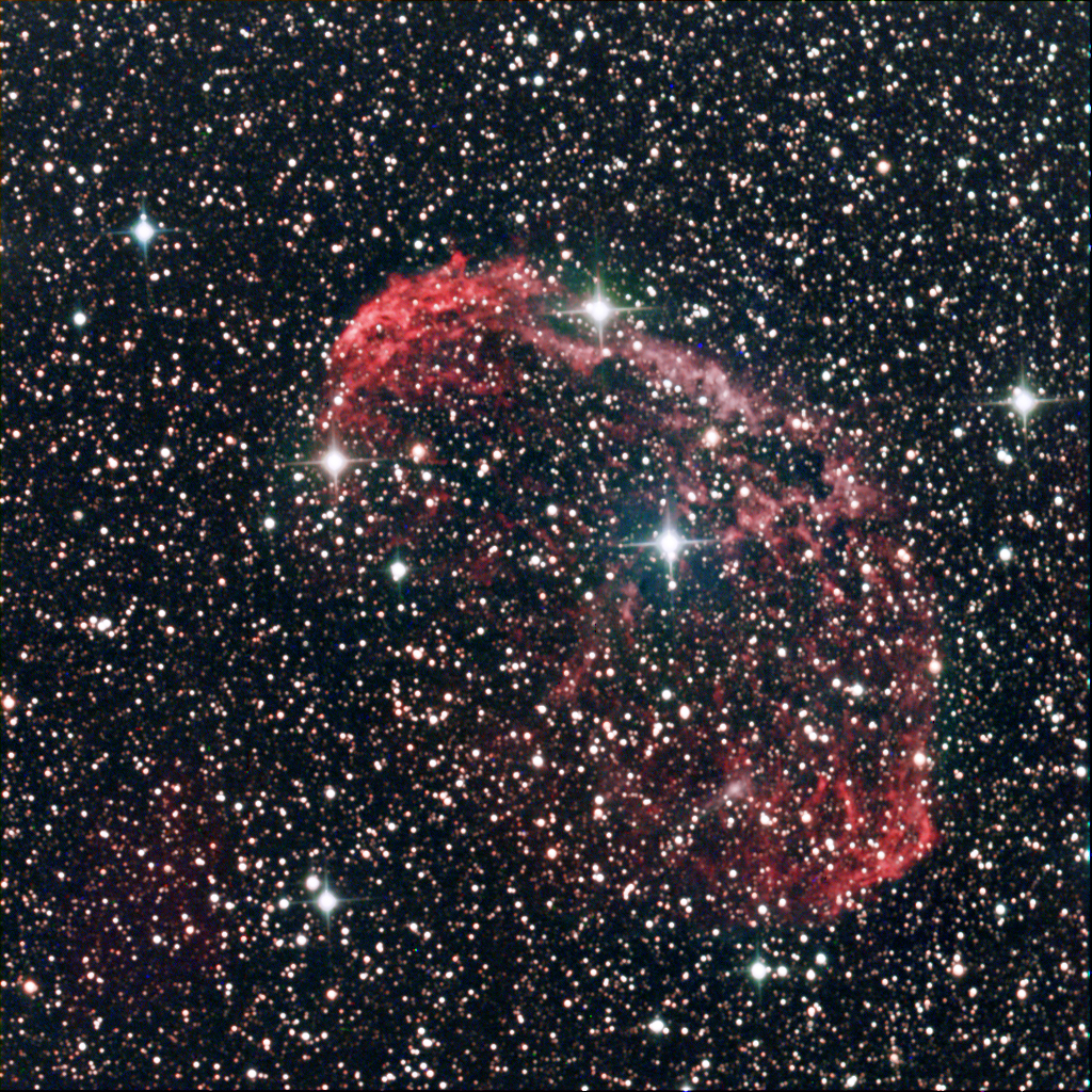 NGC 6888 is a beautiful emission nebula in Cygnus. From its shape it appears to be an old supernova remnent.