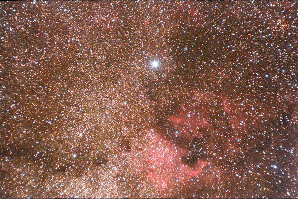 NGC 7000 is the well-known North America Nebula in Cygnus. Occasionally visible to the naked eye, it is not a difficult object with an 8" telescope providing the skies are dark and low magnification is used.