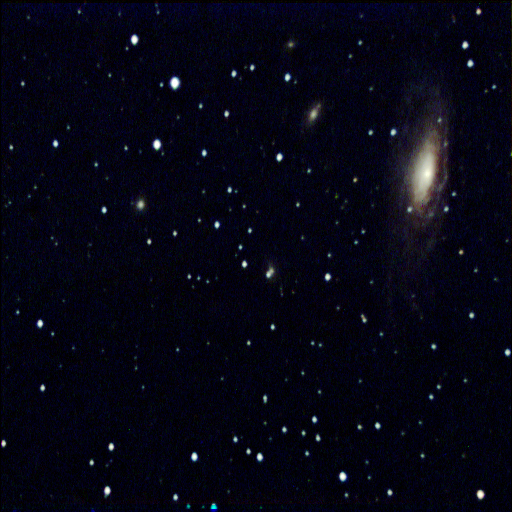 NGC 7331 is a large and bright spiral galaxy in Pegasus. At magnitude 9.4, it is easily visible in an 8" telescope. Associated with the galaxy are several smaller and fainter companion galaxies. Several of these are visible in a 10" telescope under dark skies. In the image above, just to the left of NGC 7331 is the 13th magnitude NGC 7335. Above it is NGC 7336 and below it is NGC 7337. To the left of NGC 7337 is NGC 7340.