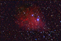 Seeing colour in nebulae can be a real challenge. The Orion nebula (M42) shows a green tinge even in small telescopes. However to see the red colouration that dominates photographs requires at least a moderate telescope and dark skies. I have always found the Trifid nebula (M20) to be the easiest, probably due to the colour contrast between the two portions of the nebula. A 10" telescope will clearly show a pinkish colour if the skies are dark. The Keyhole nebula (NGC 3372) will show a pink colour in a 12", while a 16" will show the same colour in the outer portions of the Orion nebula.