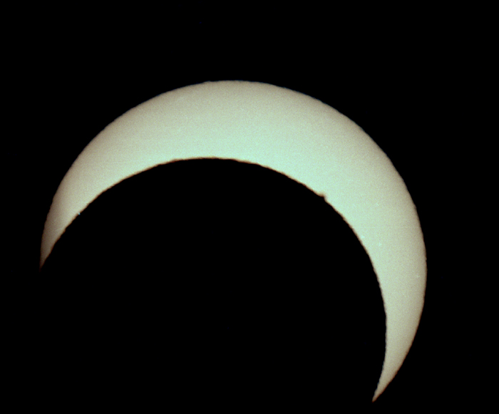 After a couple of minutes, the Sun was clear of the cloud, so I was anxious to take some more photographs. Then came a problem! My friend had managed to jam his camera in the telescope!!!! To this day I do not know how he managed to do it! Suffice to say, that by the time I had managed to wrestle his camera off the scope, annularity was over! A big lesson for eclipses.... NEVER let someone else use your equipment during an eclipse!!!!!