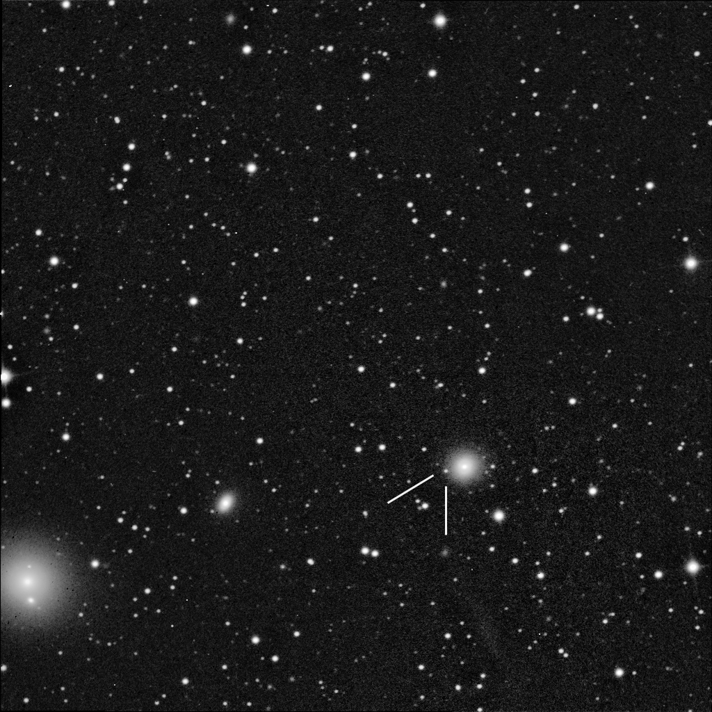 Supernova SNhunt 281 was discovered on March 16 by the Catalina Real-time Transient Survey. The supernova was visible in a 10" telescope when it peaked at about magnitude 13.2 during April 2015. In the first image below, the supernova is indicated by the lines. It was a type Ia supernova. Unfortunately weather and work combined to restrict the number of observations of the supernova that I was able to make.